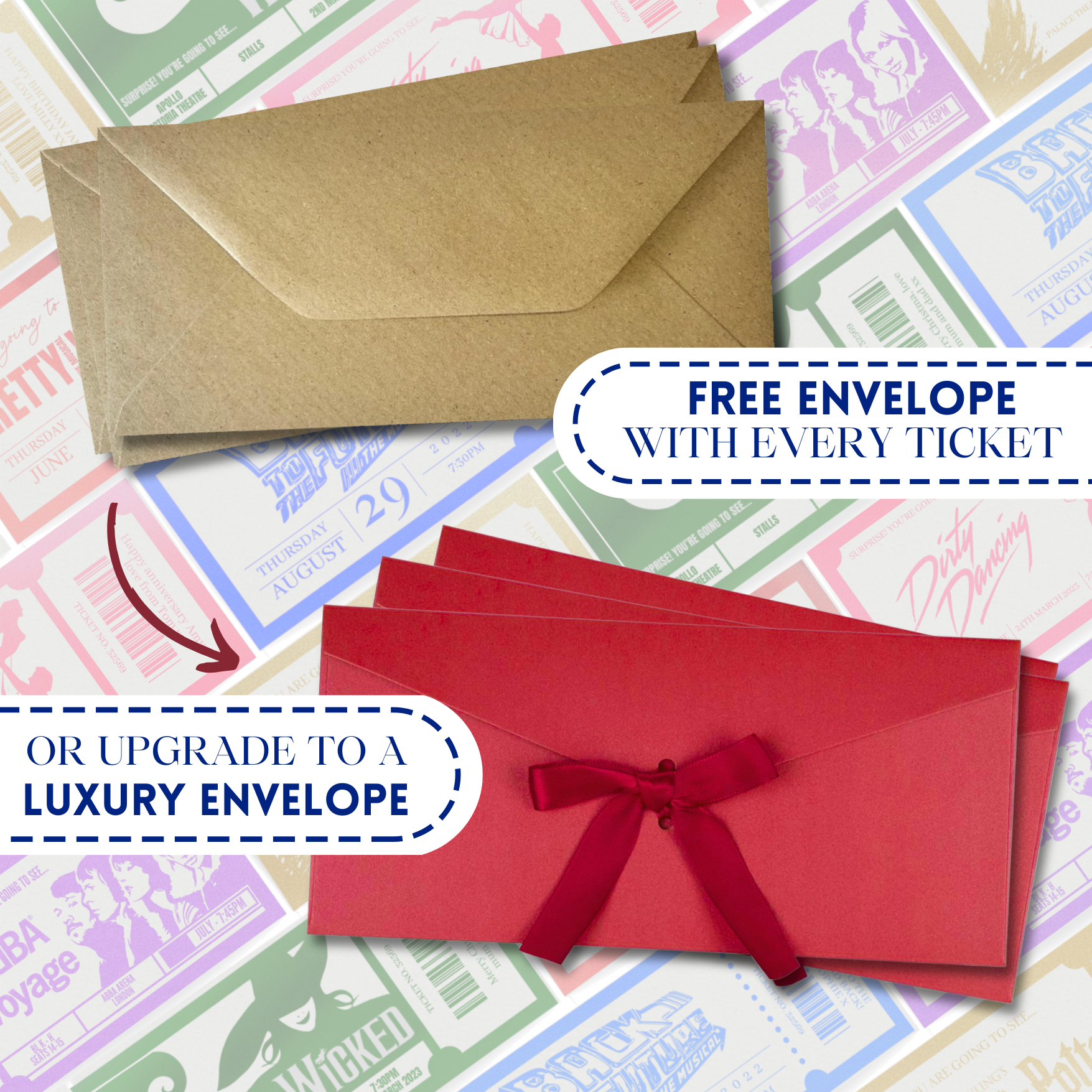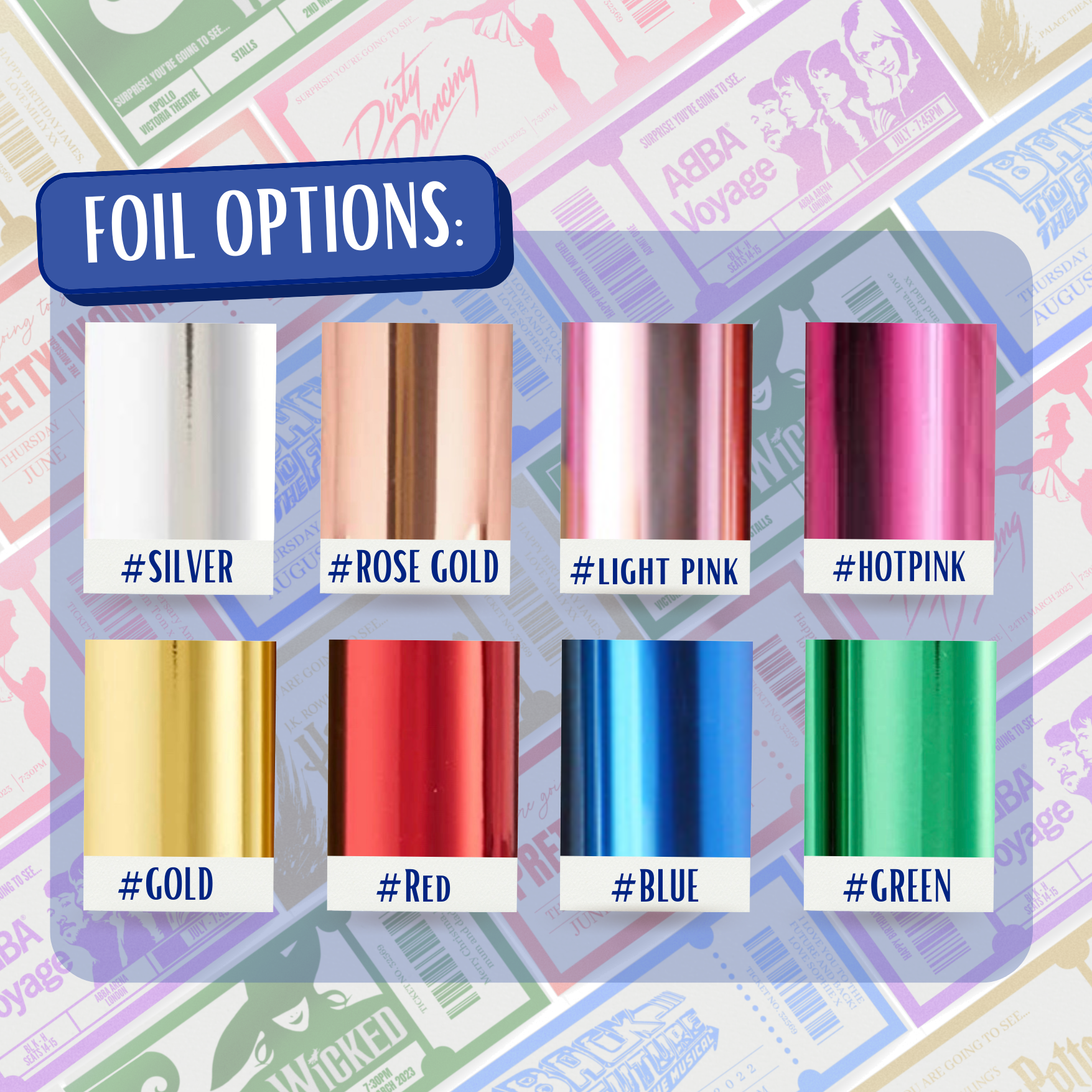 Luxury Foiled Ticket for any event or occasion! Surprise your loved ones with a unique keep sake that will make them say ‘WOW!’ Out load! These vouchers cover all events whether it be concerts, theatre show, wine tasting, brunch, a weekend away, escape room, concert, theatre show and for all occasions, birthday, anniversary, Mother’s Day, valentines, graduation, etc.
