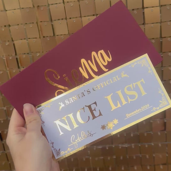 Nice List Ticket | Official Santa Certificate | Christmas Eve Box | Personalised Envelope
